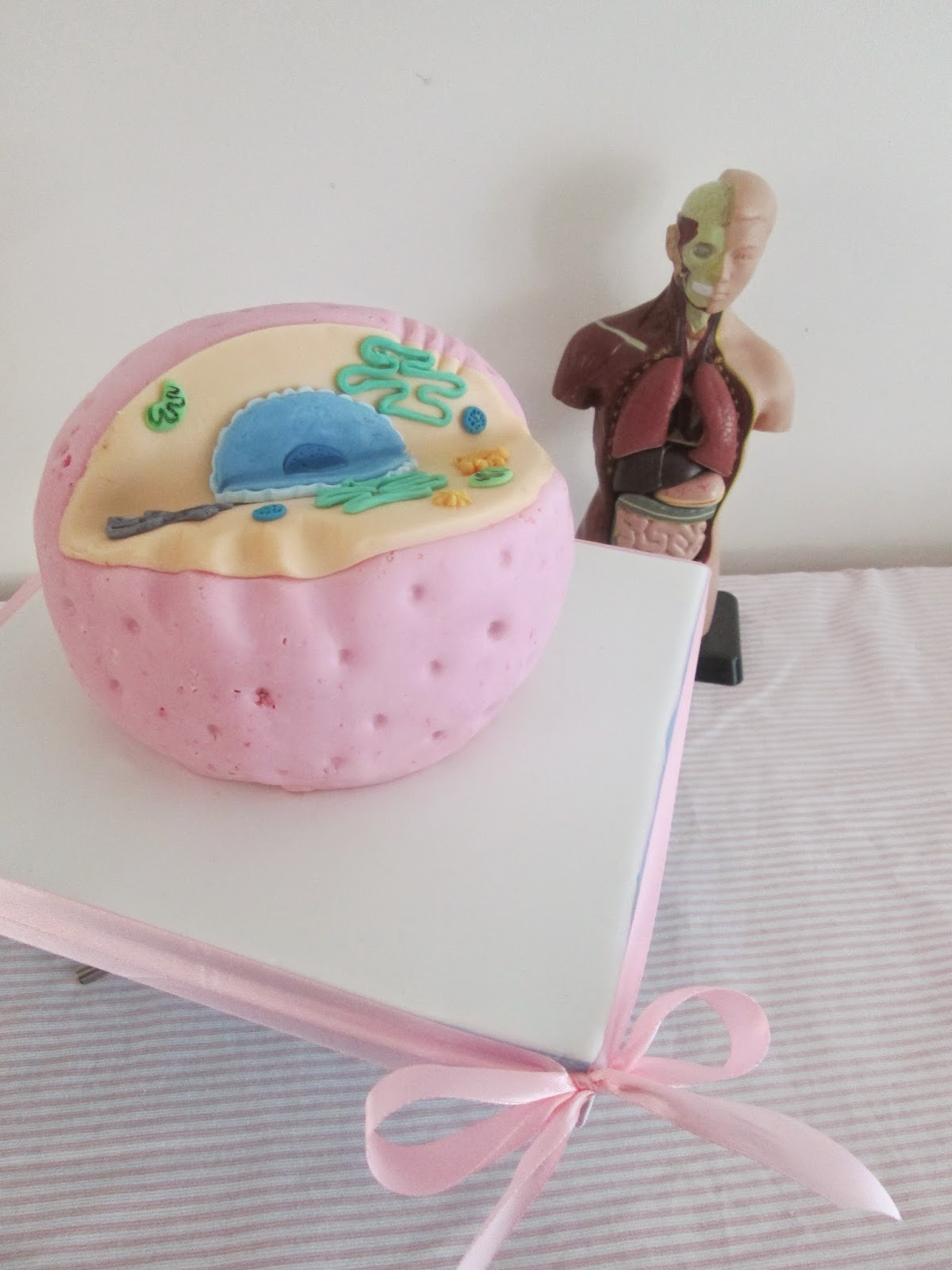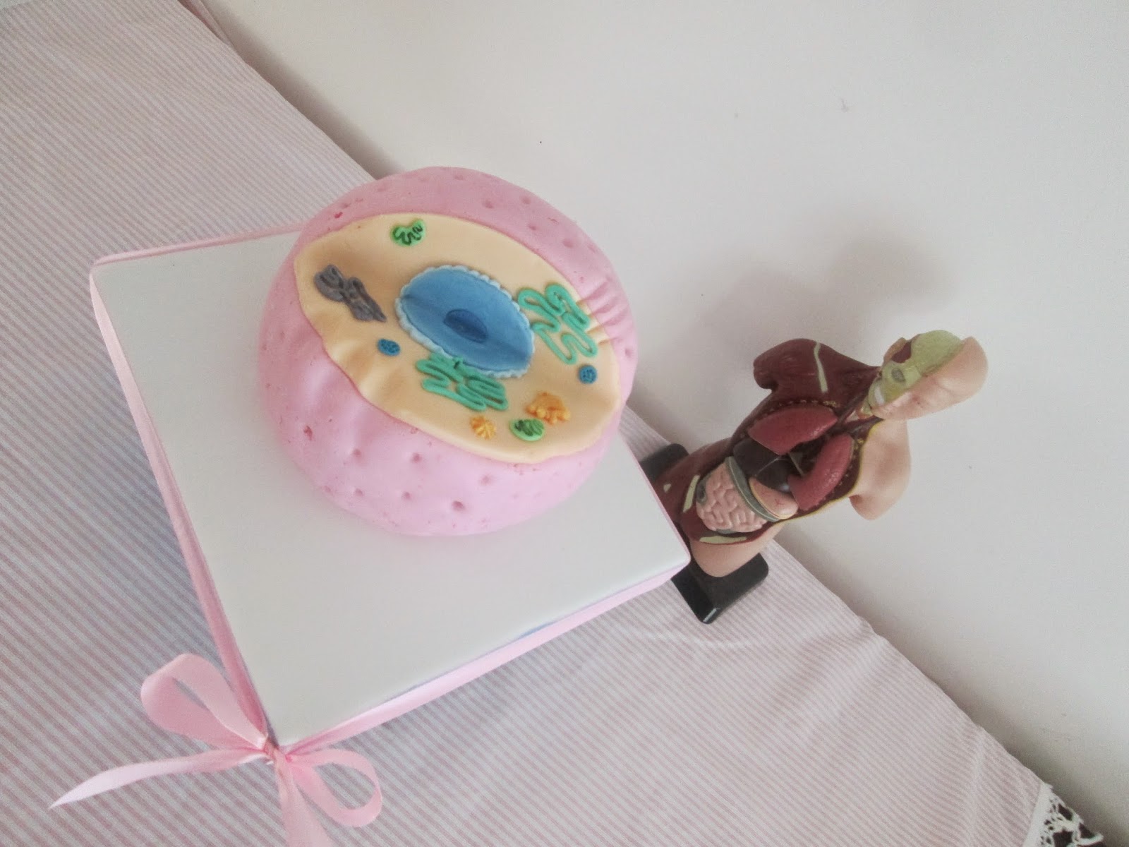 Um bolo em forma de célula animal para o aniversário de uma investigadora do Biocant, em Cantanhede.