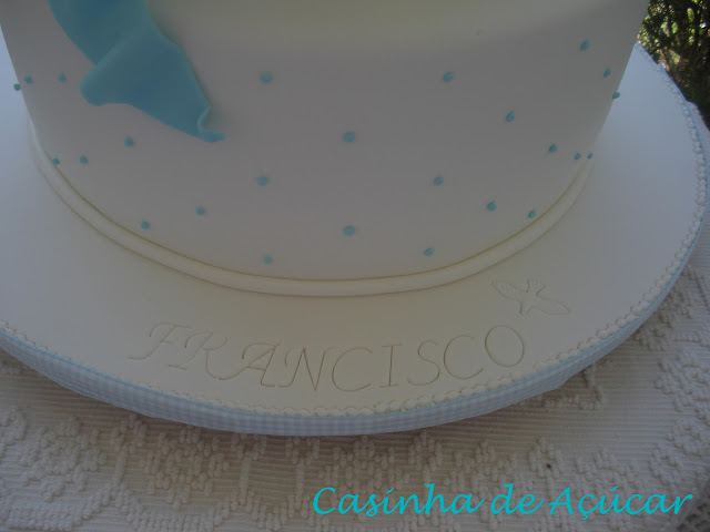 O Francisco pequenino foi hoje batizado. Este foi o bolinho dele. A mãe, que cuidou de todos os pormenores com muito carinho, queria algo muito simples, mas bonito para o seu peqenino.